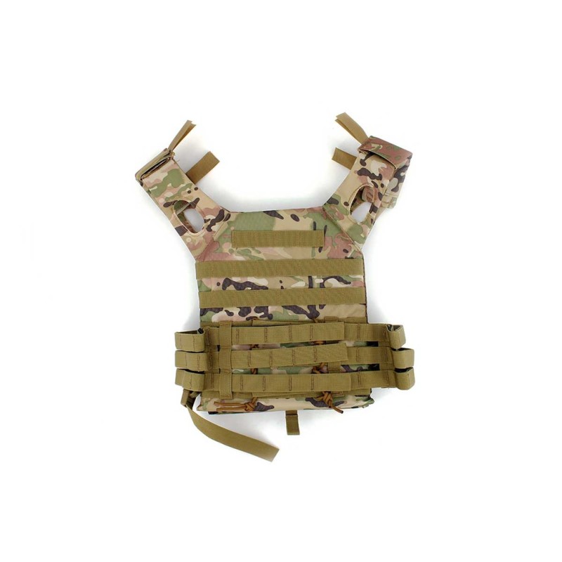 Adamas de esto el chaleco cuenta con cummerbunds con sistema Molle en los laterales y debido a esto podemos instalar más accesorios y aumentas aun más la capacidad de carga del chaleco.