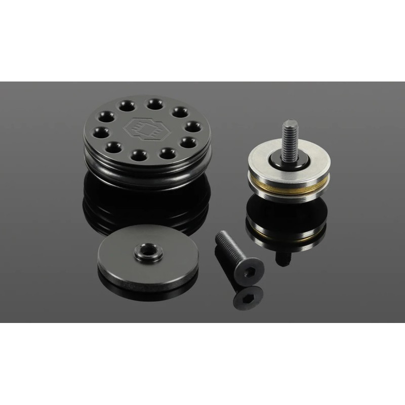 Cabeza de pistón High Speed v2, POM CNC ultraligero, 10 orificios para flujo de aire y sellado, ajuste AOE, perfecta estanqueidad pistón-cilindro, ideal para builds de alta velocidad.