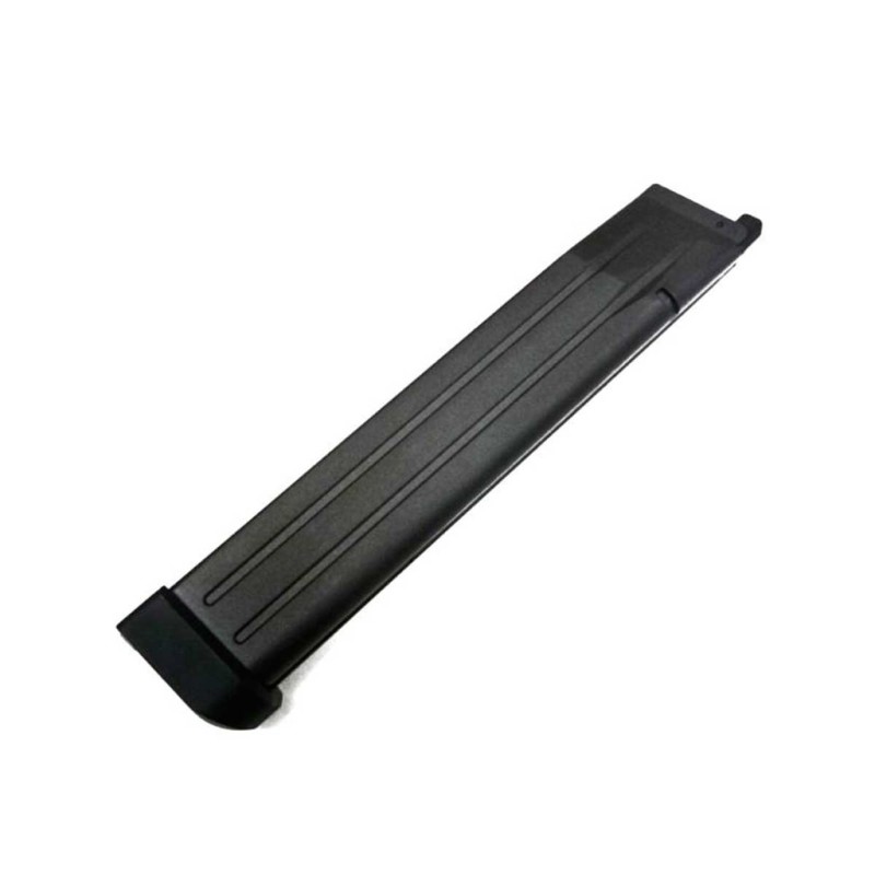 La réplica incluye dos cargadores Mid-Cap de 125bbs, tico-tico con una capacidad máxima aproximada de 190bbs, muelle M90 Y M135, adaptador T-Dean a tamiya y grip.