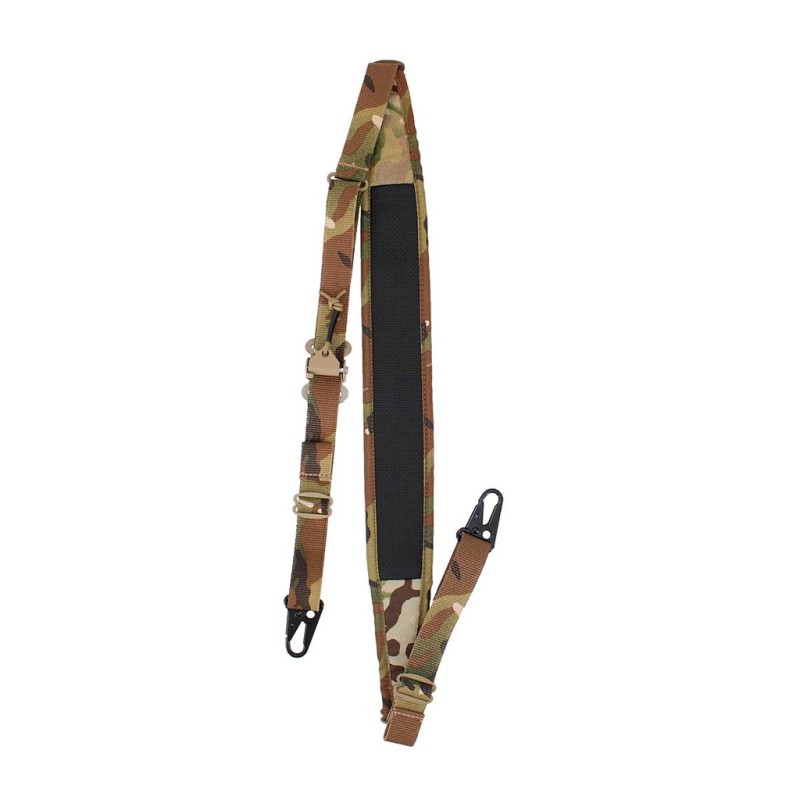 La correa es ajustable en longitud, de esta forma se podrá adaptar a distintos tamaños de replicas en función de nuestras necesidades, ya sea configurada como correa de dos puntos o de un punto. Por otro lado las hebillas son metálicas esto le aporta una gran durabilidad y resistencia.