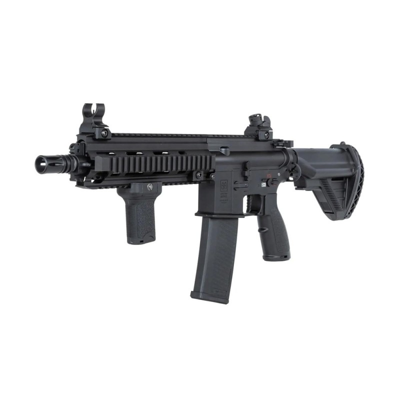 El nuevo fusil PRIME SA-PH20 HAL ETU de Specna Arms destaca por su hermoso diseño inspirado en los famosos fusiles HK 416 de Heckler & Koch, el cual fue presentado en 2005 y rápidamente se convertiría en el fusil favorito de múltiples cuerpos militares que buscaban un sustituto ideal para sus antiguos fusiles. Este fusil fue diseñado para mejorar las capacidades operativas del antiguo M4A1 y lo logró, el fusil dispone de un ancho guardamano cubierto con raíles estilo Picatinny que nos otorgan la posibilidad de instalar una gran cantidad de accesorios tácticos como grips, linternas, láseres o incluso sistemas AM/PEQ. El cuerpo dispone de un diseño muy robusto y solido acompañado de una empuñadura diseñada especialmente para proporcionar la máxima ergonomía posible, está a su vez dispone de una superficie antideslizante que nos brinda un agarre mucho más firme y cómodo. Por último en cuanto al diseño, la réplica equipa una estupenda culata retráctil que se caracteriza por poseer un espacio interior bastante amplio, haciéndola compatible con una gran variedad de baterías, adema en la parte posterior de la culata, contamos con una tapa de goma bastante gruesa que nos brinda una superficie de apoyo increíblemente cómoda.
