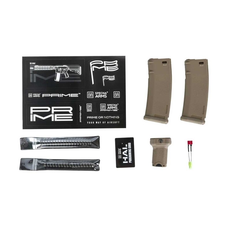 La prestigiosa marca Specna Arms presenta en 2024 su nueva gama PRIME, que ofrece una seria de mejoras enfocadas en maximizar el rendimiento de forma exponencial, mientras que mantiene una relación calidad precio realmente excepcional con respeto a otros modelos del mercado. Esta nueva gama PRIME monta un nuevo motor sin escobilla de tipo brushlees, el cual ofrece un alto rendimiento a la vez que mantiene un bajo consumo de batería y una menor generación de calor haciéndolo más eficiente con respecto a los motores convencionales y junto con el gatillo electrónico HAL ETU de Specna Arms que nos brinda la posibilidad de usar baterías de 11.1V mejorando en gran medida el rendimiento de nuestra replica consiguiendo una mejor respuesta de disparo junto con una gran variedad e funciones interesantes programables de forma cómoda y sencilla mediante el gatillo.