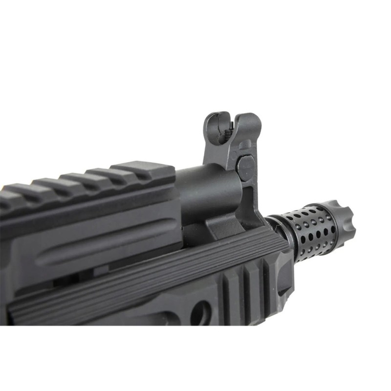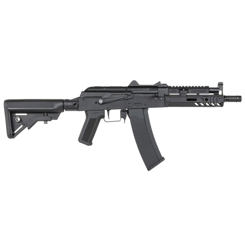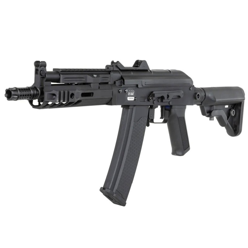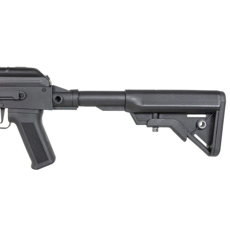 Siguiendo su filosofía de excelencia, Specna Arms continúa reforzando su prestigio como fabricante de réplicas de alto rendimiento, y con la serie CORE eleva aún más el estándar. La SA-J82 CORE Gen.2 HAL ETU se inspira en el icónico AK-74 soviético presentado en 1974, reinterpretándolo con un diseño robusto y realista que combina tradición y modernidad, incorporando elementos actuales como un guardamano M-LOK, un tubo de gases con raíles Picatinny y una culata retráctil tipo crane, aportando versatilidad y un estilo táctico muy atractivo. A nivel de construcción, está pensada para soportar un uso intensivo gracias a un ensamblaje preciso que minimiza holguras y mantiene un ajuste firme con el paso del tiempo. El cuerpo principal está fabricado en polímero reforzado con fibra de nailon, reduciendo el peso sin comprometer la resistencia, lo que la convierte en una opción ideal tanto para partidas dinámicas como para eventos tipo milsim. Además, el guardamano está realizado en una robusta aleación metálica, aportando mayor realismo al conjunto, mientras que componentes como el cañón exterior, la bocacha y otras piezas clave están fabricados del mismo modo en aleación metálica, y tornillos, pasadores y elementos estructurales en acero, garantizando una durabilidad sobresaliente.