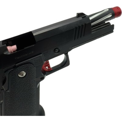 En cuanto a la mecánica, la réplica mota un gearbox estándar V2 con pistón refezado y engranajes de acero, esta plataforma nos brinda también la posibilidad de acceder a una gran variedad de piezas compatibles teniendo una gran capacidad de mejora, por otro lado la réplica dispone del sistema de cambio rápido de muelle ESA, este sistema nos permite aguatar la potencia de nuestra replica cambiando el muelle de una forma cómoda sin tener que acudir a mecánicos o utilizar herramientas complejas o especializadas.