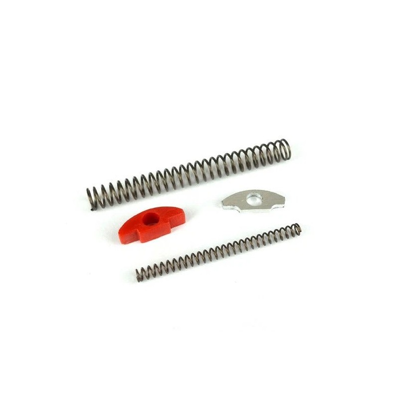 Kit completo con amortiguadores y resortes MASTERSHOT CUSTOM para AAP-01. 100 % HECHO EN ITALIA. Kit completo con todo lo necesario para que tu AAP01 sea extremadamente rápida. Los amortiguadores permiten que tu réplica retroceda mucho más rápido gracias a la reducción del recorrido. El material de los amortiguadores, compuesto de silicona dura y aluminio, permite amortiguar mejor el recorrido de la unidad de retroceso (BBU) y hacer que la réplica sea más precisa en el disparo. El porcentaje de los resortes es aproximadamente un 140 % más duro que los resortes originales. El acero al carbono del que deriva la bobina de los resortes está tratado para que sea duradero y de alto rendimiento. Esta modificación también garantiza un menor consumo de gas debido al menor retroceso de la parte móvil. Nota: Se recomienda combinar un kit de gatillo reforzado debido al mayor desgaste de la mecánica.