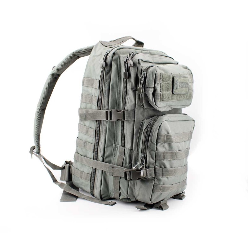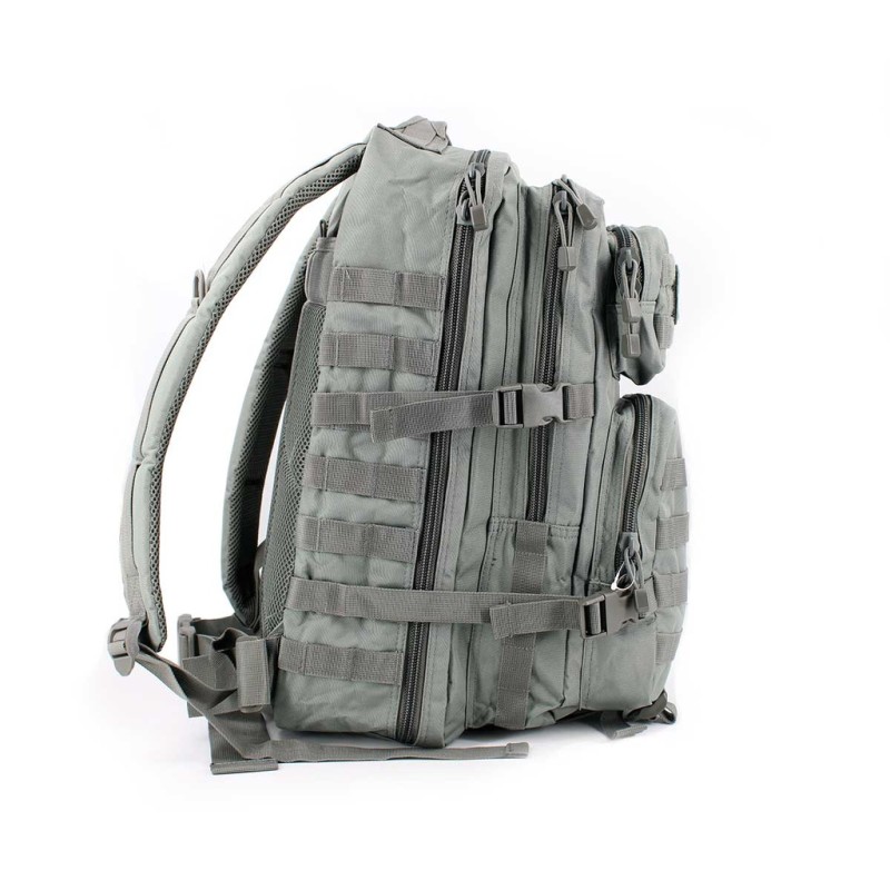 Además, la mochila ha sido diseñada bajo el versátil y práctico sistema Molle, lo que permite acoplar una amplia variedad de accesorios a lo largo de su superficie. En cuanto a su capacidad, los 36 litros disponibles están organizados de manera eficiente en 4 compartimentos con cremalleras de doble vía. Estos incluyen dos bolsillos principales, siendo el trasero el de mayor capacidad, y dos compartimentos frontales más pequeños: el superior, que cuenta con un panel de velcro y es el más reducido, y el inferior, que ofrece un espacio más amplio, Para mayor conveniencia, la mochila incorpora correas de compresión laterales que facilitan el ajuste del volumen, permitiendo adaptar su tamaño según nuestras necesidades específicas.