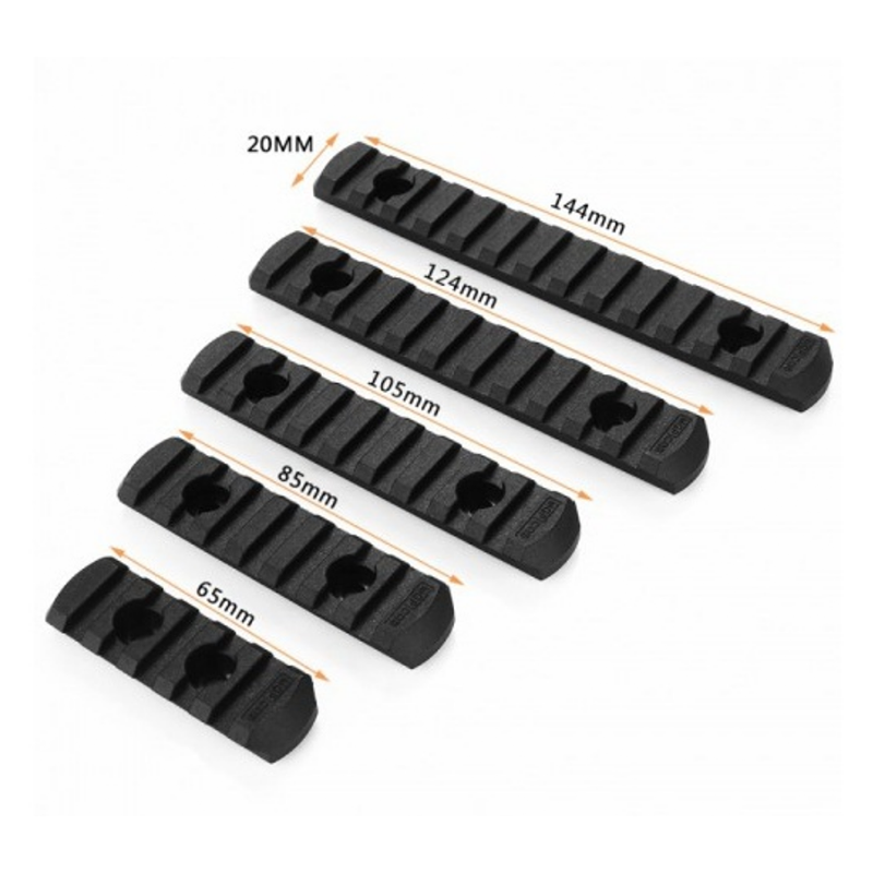 conjunto de 5 railes de diferentes medidas. M-LOK