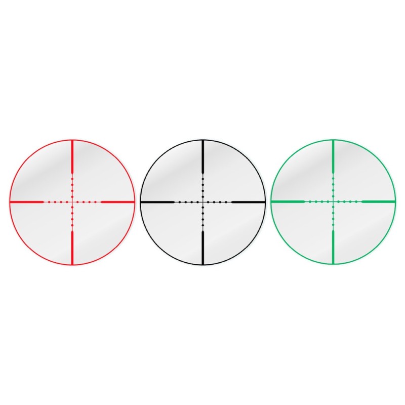 El visor incorpora una retícula Range Finder Graph, diseñada para facilitar el cálculo de distancias y correcciones de tiro de manera rápida e intuitiva. Esta retícula resulta muy cómoda de usar y está pensada para adaptarse a diversas situaciones tácticas. Asimismo, cuenta con iluminación en dos colores verde y rojo, con 5 niveles de intensidad ajustable por color, lo que permite al usuario adaptar el brillo según la luz ambiental y las necesidades del momento, mejorando así la precisión en cualquier escenario.