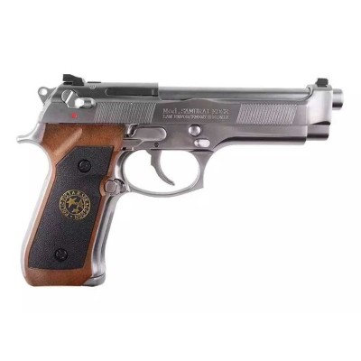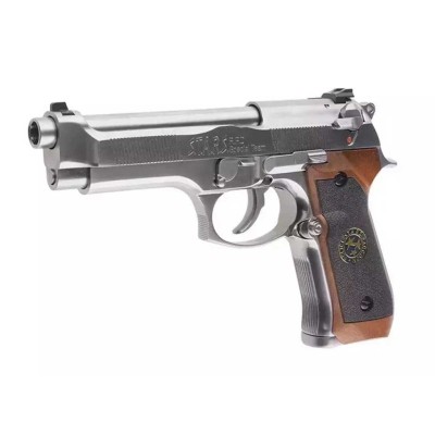 WE se caracteriza por desarrollar replica con una gran calidad y la pistola M92 SPS es una gran exponente de esta calidad, la réplica esta fabricada principalmente en metal, la corredera está desarrollada con una aleación de aluminio, siendo bastante ligero y a su vez proporciona una excelente resistencia, las cachas y otros elementos está fabricado en polímero de alta resistencia con un acabado de efecto madera exquisito.